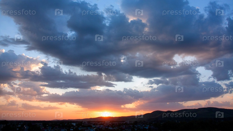 много облаков на закате