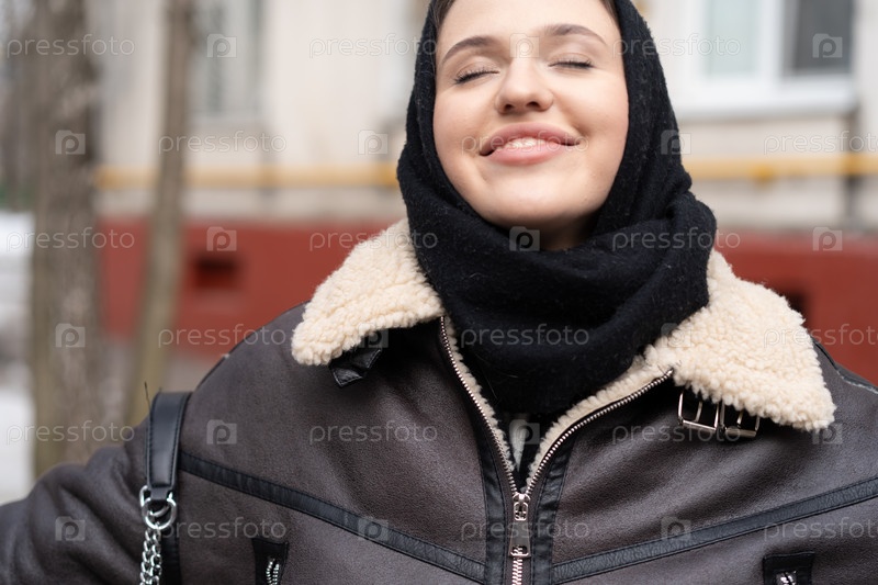 Портрет молодой красивой женщины в платке зимой на улице