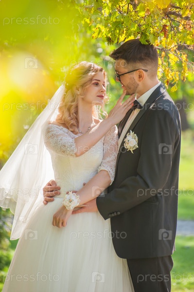 Свадебная фотосессия, жених и невеста показывают свои искренние чувства любви