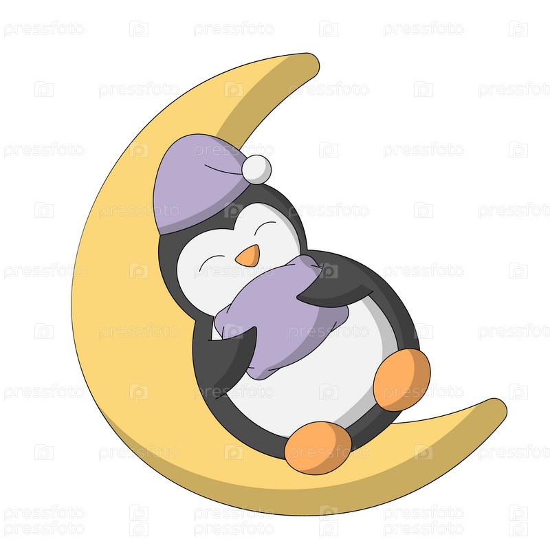 Милый мультяшный спящий пингвин на луне