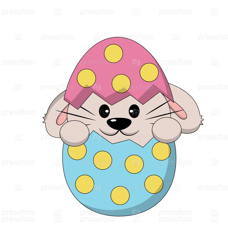Милый мультяшный кролик в пасхальном яйце в цвете