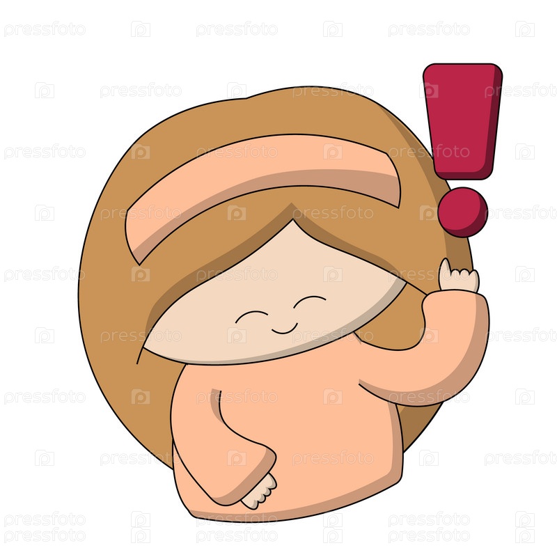 Милая мультяшная девочка с восклицательным знаком в цвете