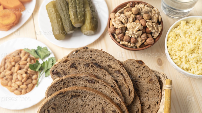 Пресный хлеб с изюмом. Еда для христиан во время Великого поста, постные продукты