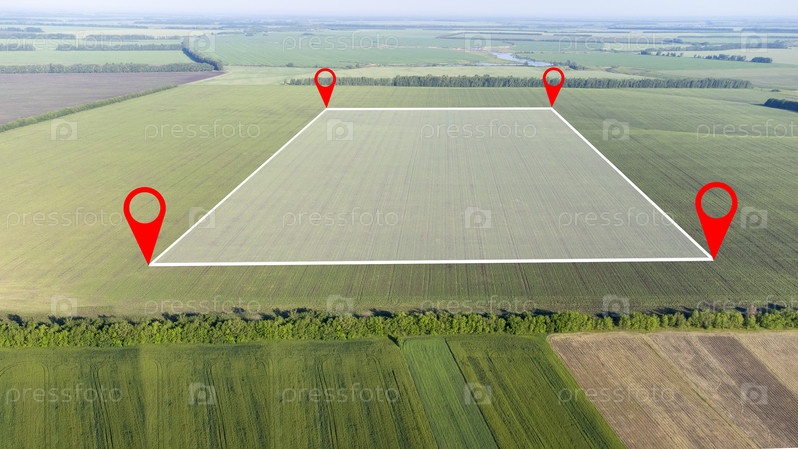 План межевания, управление земельным участком - концепция недвижимости с свободной землей на зеленом поле, доступной для строительства здания