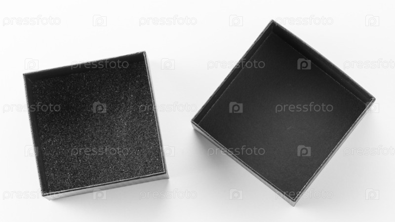 Черный ящик для подарка, белый фон. Вид сверху, Пустой дизайн, Пустое пространство, Студийное фото