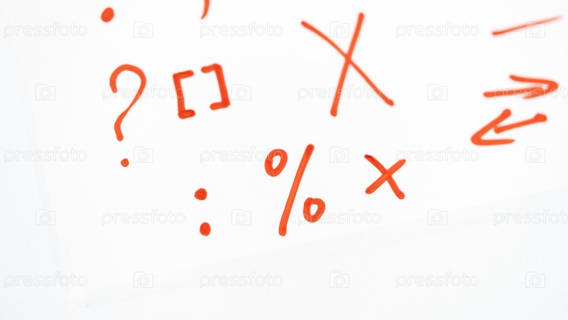 Символы красного маркера изолированы на белом фоне. Разные красные маркерные знаки на белом фоне, знак плюс, знак минус, красный штрих маркера, красный маркер в виде эллипса, красный маркер двоеточия