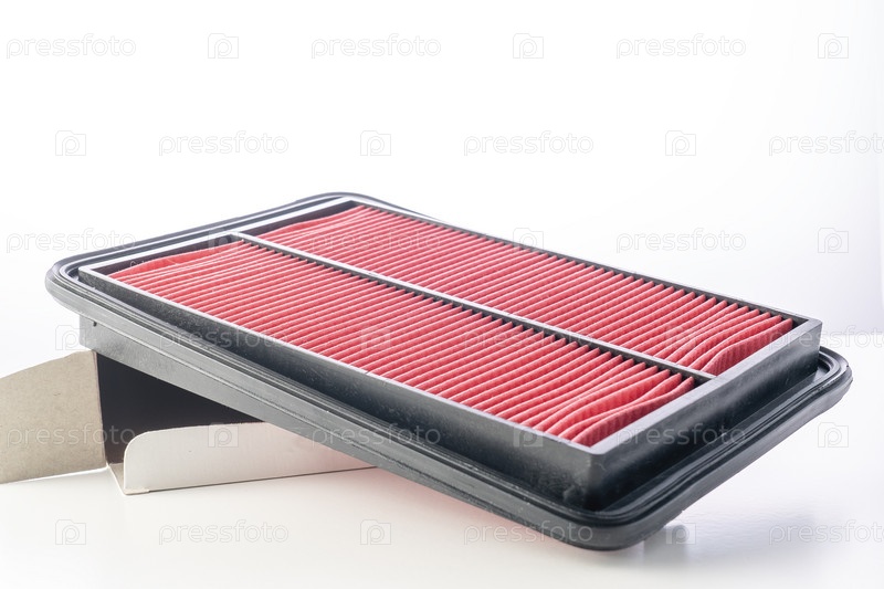 Воздушный фильтр для двигателя внутреннего сгорания крупным планом. Бумажный воздушный фильтр автомобильного двигателя изолирован на белом фоне с обрезкой. Путь нового воздушного фильтра двигателя автомобиля, на белом фоне