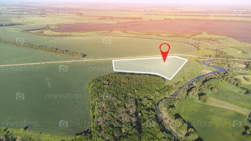 План межевания, управление земельным участком - концепция недвижимости с свободной землей на зеленом поле, доступной для строительства здания