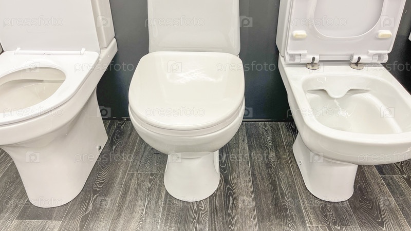 Унитаз крупным планом в магазине сантехники, Селективный фокус, Новая сантехника для туалета