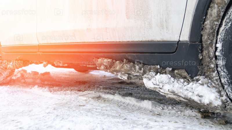 Снег прилипает к колесам автомобиля, Tinted Image Selective Focus