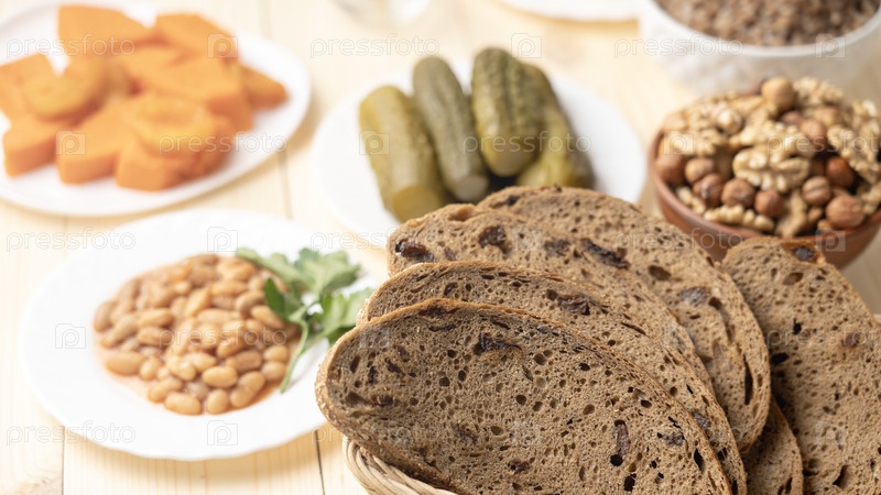 Пресный хлеб с изюмом. Еда для христиан во время Великого поста, постные продукты