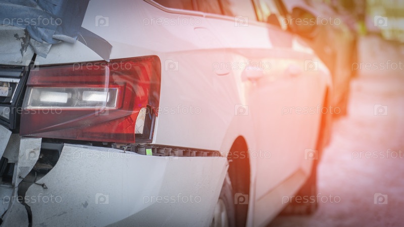 Повреждение заднего бампера автомобиля после аварии