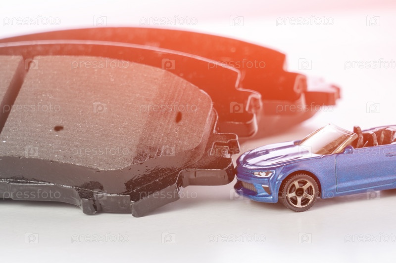Новые тормозные колодки для дисковых тормозов легковых автомобилей? Новые запчасти для обслуживания и ремонта автомобилей. Концепт, тонировка, студийное фото