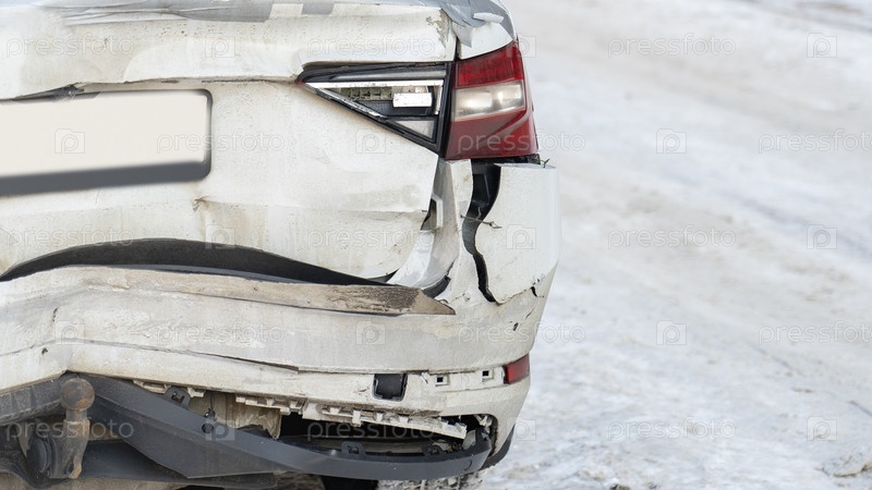Треснувший задний бампер и задний фонарь автомобиля крупным планом