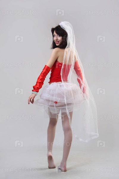 Яркая девушка в свадебном наряде