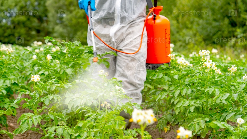 Обработка растений запрещенными препаратами, фермер применяет запрещенные удобрения, опасные для человека вещества при выращивании