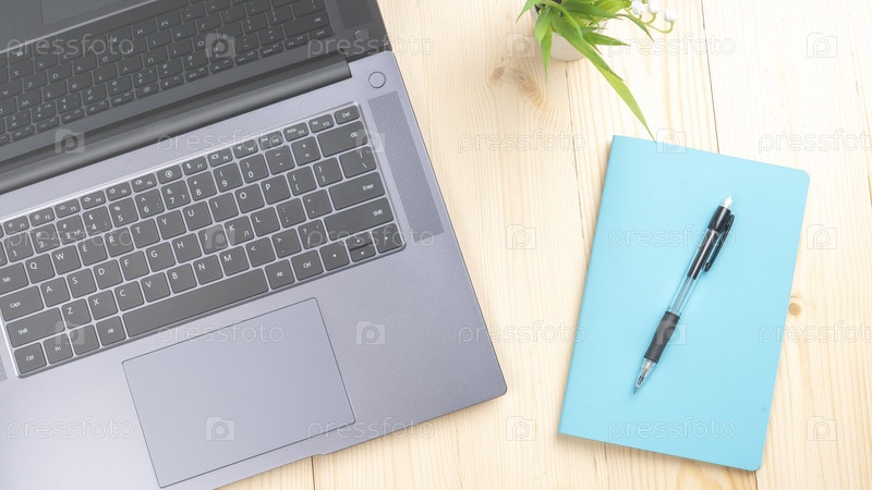Современный ноутбук на деревянном фоне, Тонировка, Вспышка, Выделение, Концепция, Белое пространство для вашего текста