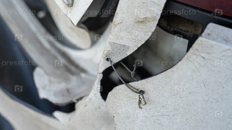 Треснувший задний бампер и задний фонарь автомобиля крупным планом
