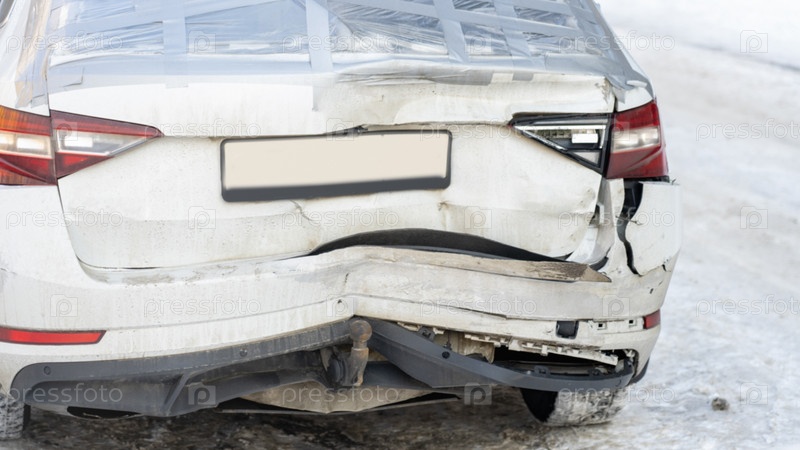 Треснувший задний бампер и задний фонарь автомобиля крупным планом