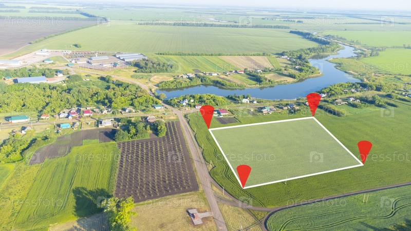 План межевания, управление земельным участком - концепция недвижимости с свободной землей на зеленом поле, доступной для строительства здания