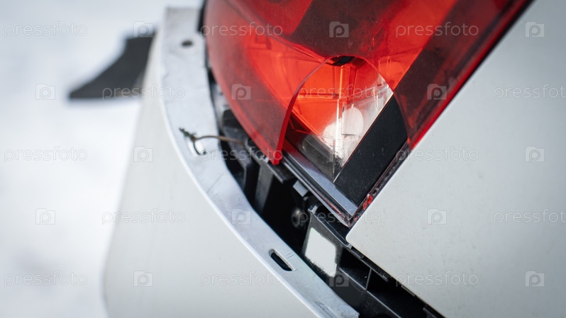 Треснувший задний бампер и задний фонарь автомобиля крупным планом
