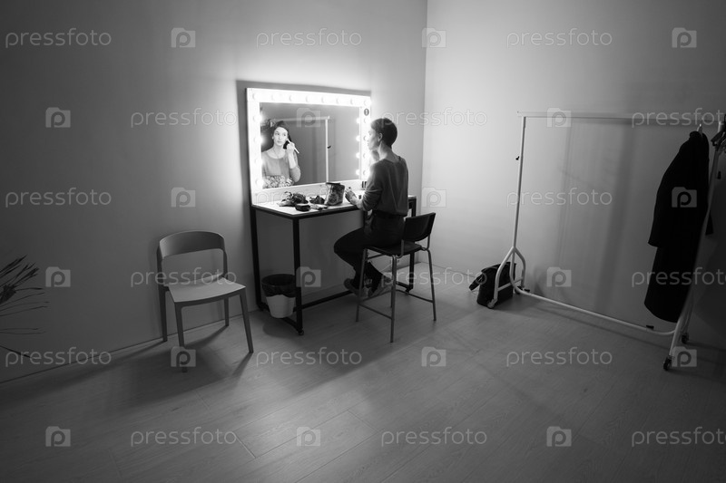 Молодая красивая женщина наносит макияж возле зеркала