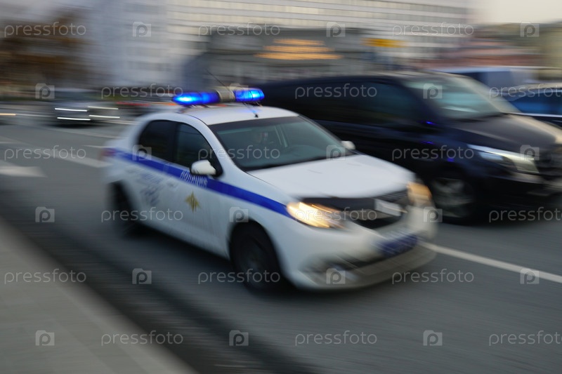 Экипаж Полиции проезжает по улице Новый Арбат в Москве, Россия, 15 ноября 2023