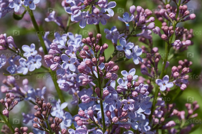Цветочные соцветия появились из бутонов сирены (лат. Syringa vulgaris) в лучах весеннего солнца
