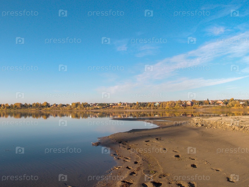 Вид на осенний берег реки Иртыш в Омской области