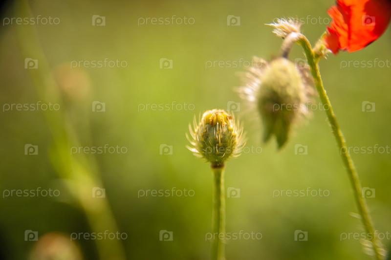Полевой цветок мака в дикой природе, большое размытие фона