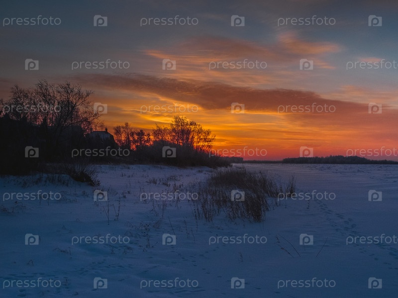 Вид на зимний берег реки Иртыш в Омской области