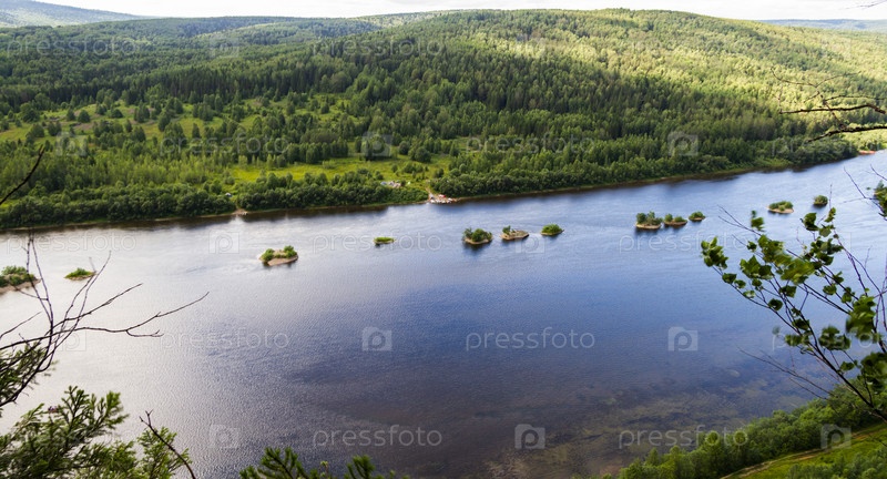 Летний пейзаж. Вид на реку Вишера со скалы Ветлан