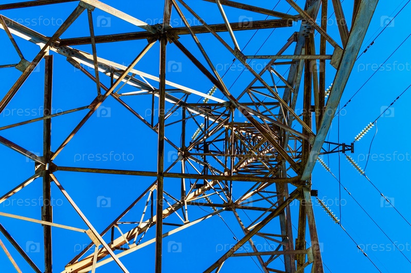 Башня электропередачи на фоне голубого неба