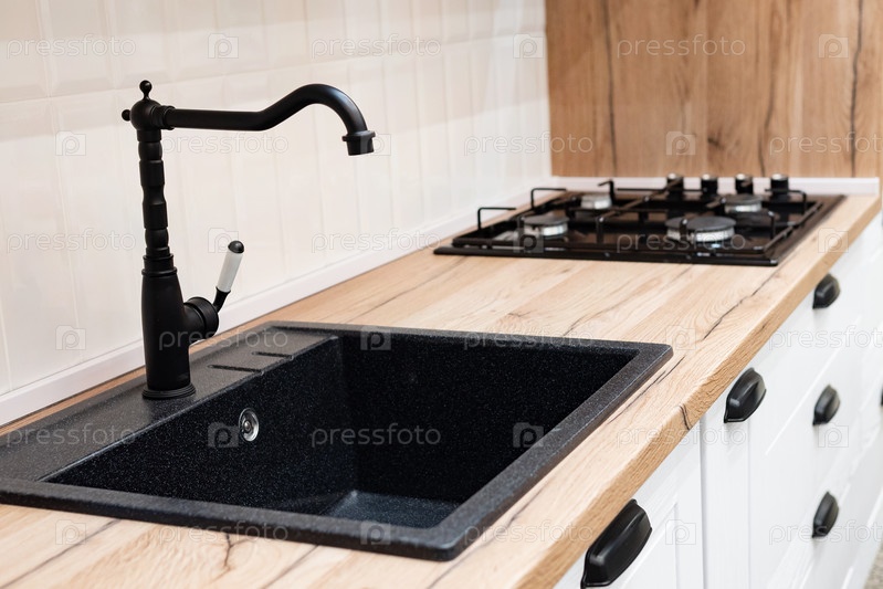 Продавец-женщина помогает молодой паре выбрать новый кухонный смеситель