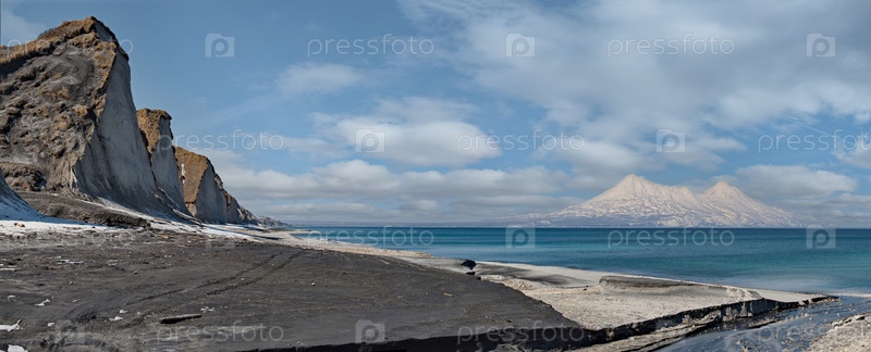 Россия, Дальний Восток, Курильские острова. Одной из главных достопримечательностей острова Итуруп являются разрушительные пемзовые горы на побережье Охотского моря