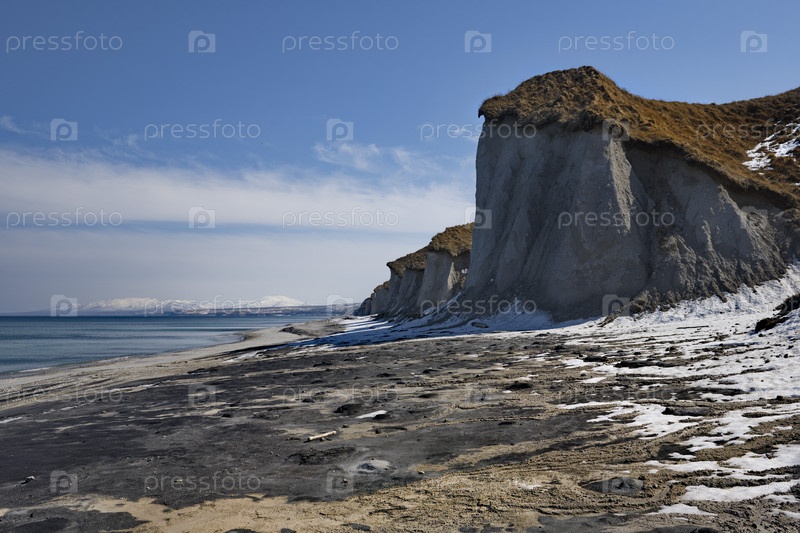 Россия, Дальний Восток, Курильские острова. Одной из главных достопримечательностей острова Итуруп являются разрушительные пемзовые горы на побережье Охотского моря