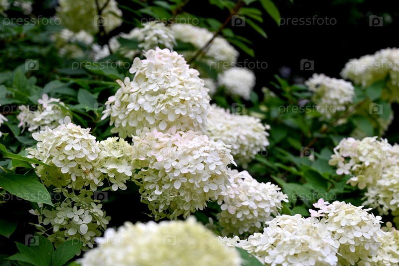 Белые гортензии, растущие на кусте