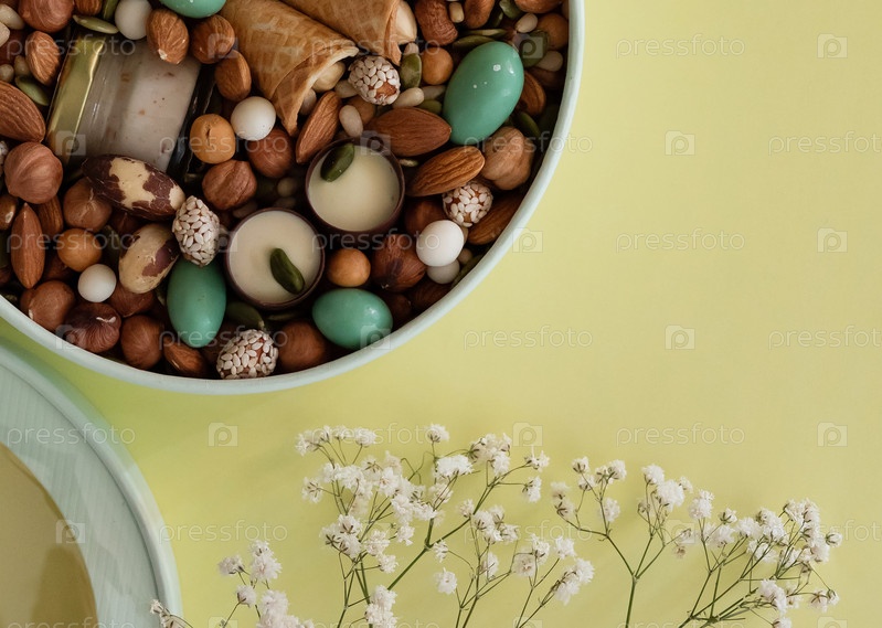 Арахис в коробке. Подарок к Женскому дню (8 марта), Женскому дню. День матери, День святого Валентина. Праздничная круглая коробочка
