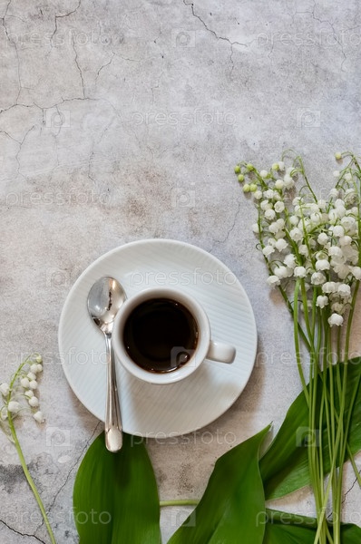 Цветы ландыша в стеклянной вазе, черный фон, выборочный фокус
