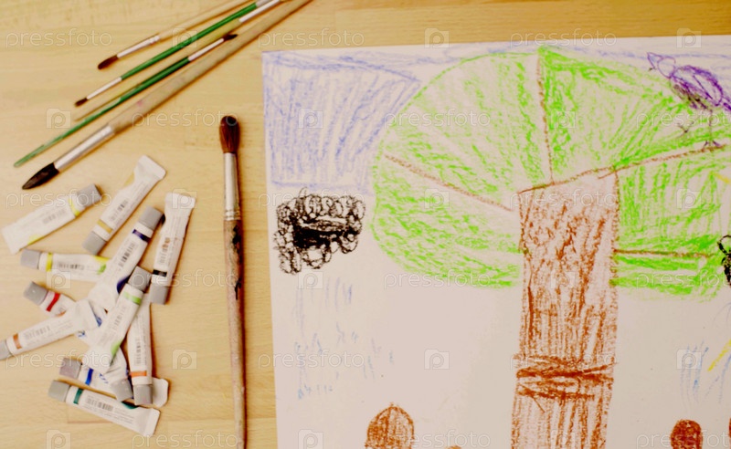 Девушка рисует на бумаге пастельными мелками. Готовая картина