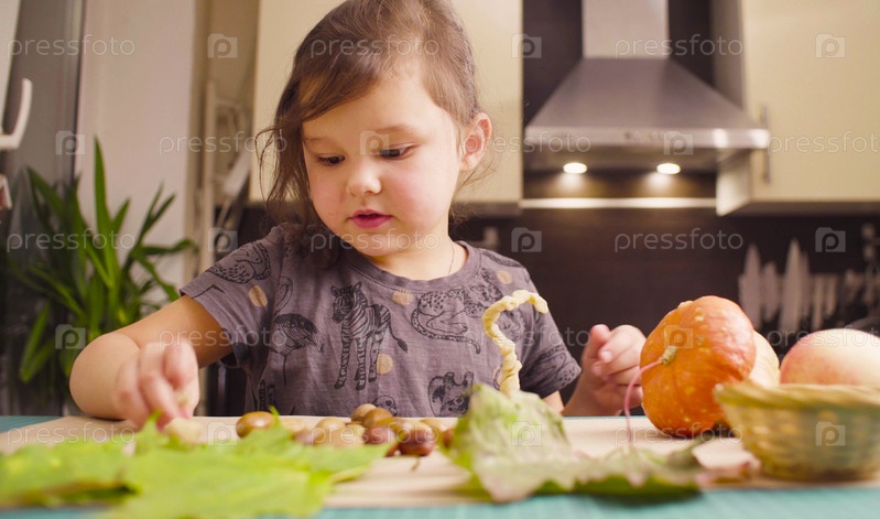 Маленькая девочка, сидящая за столом, лепит что-то из воска