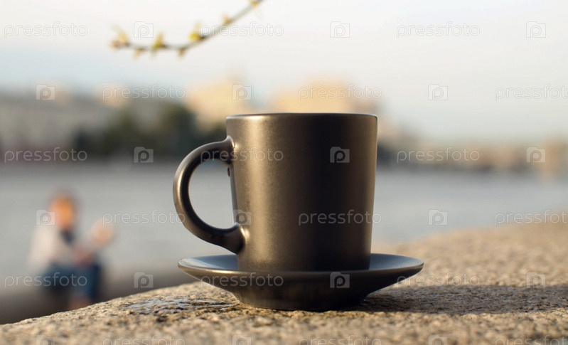 Чашка на гранитном парапете в парке в летний день