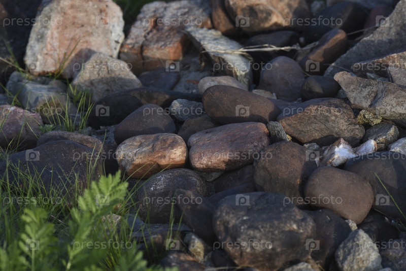 Разноцветные камни на берегу реки. Круглые камни на пляже