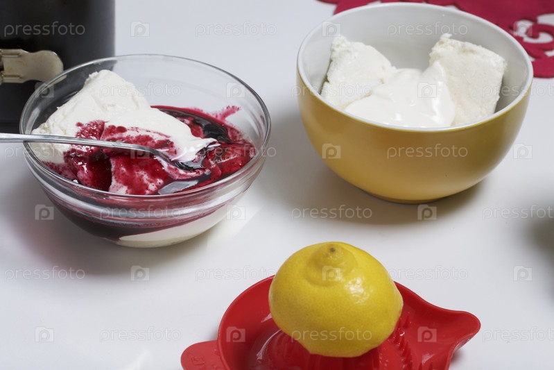 Черничный чизкейк. Ингредиенты для приготовления расположены на поверхности стола