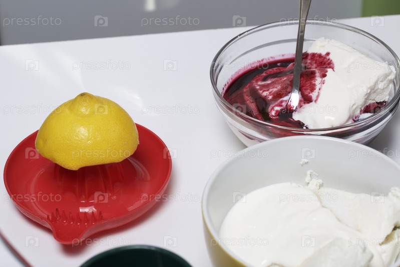 Черничный чизкейк. Ингредиенты для приготовления расположены на поверхности стола