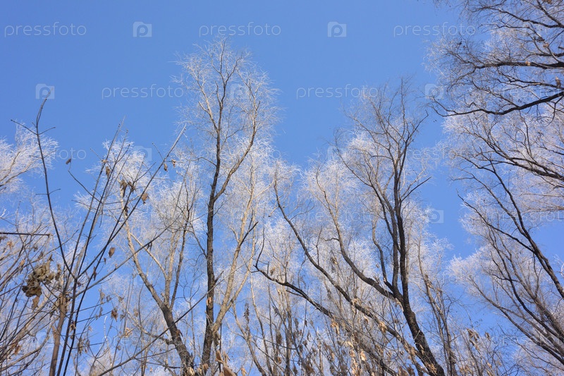 Растения, покрытые снегом, Омская область, Россия