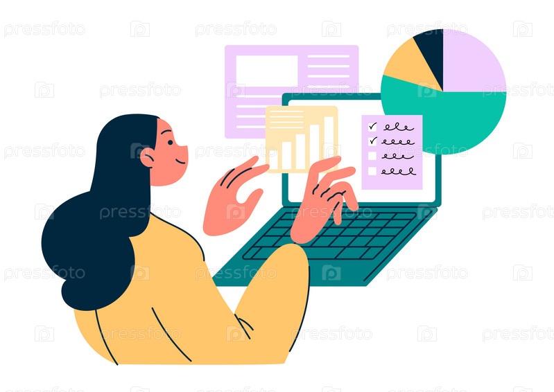 Деловая женщина, работающая онлайн за информацией о данных портативного компьютера
