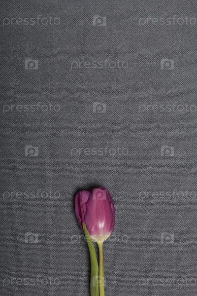 Один розовый тюльпан на сером фоне