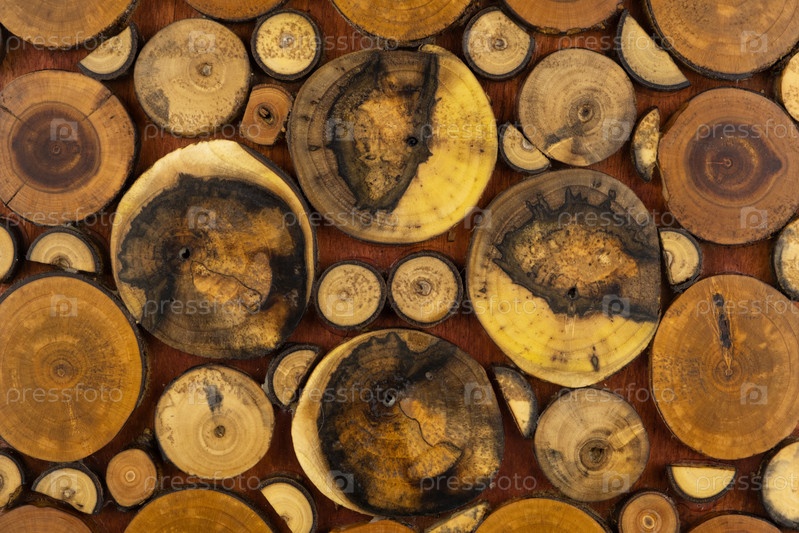 Деревянное декоративное панно из круглых пропилов дерева. Вид сверху