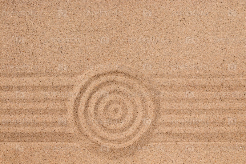 Концентрический круг и линии на песке. Текстура песка
